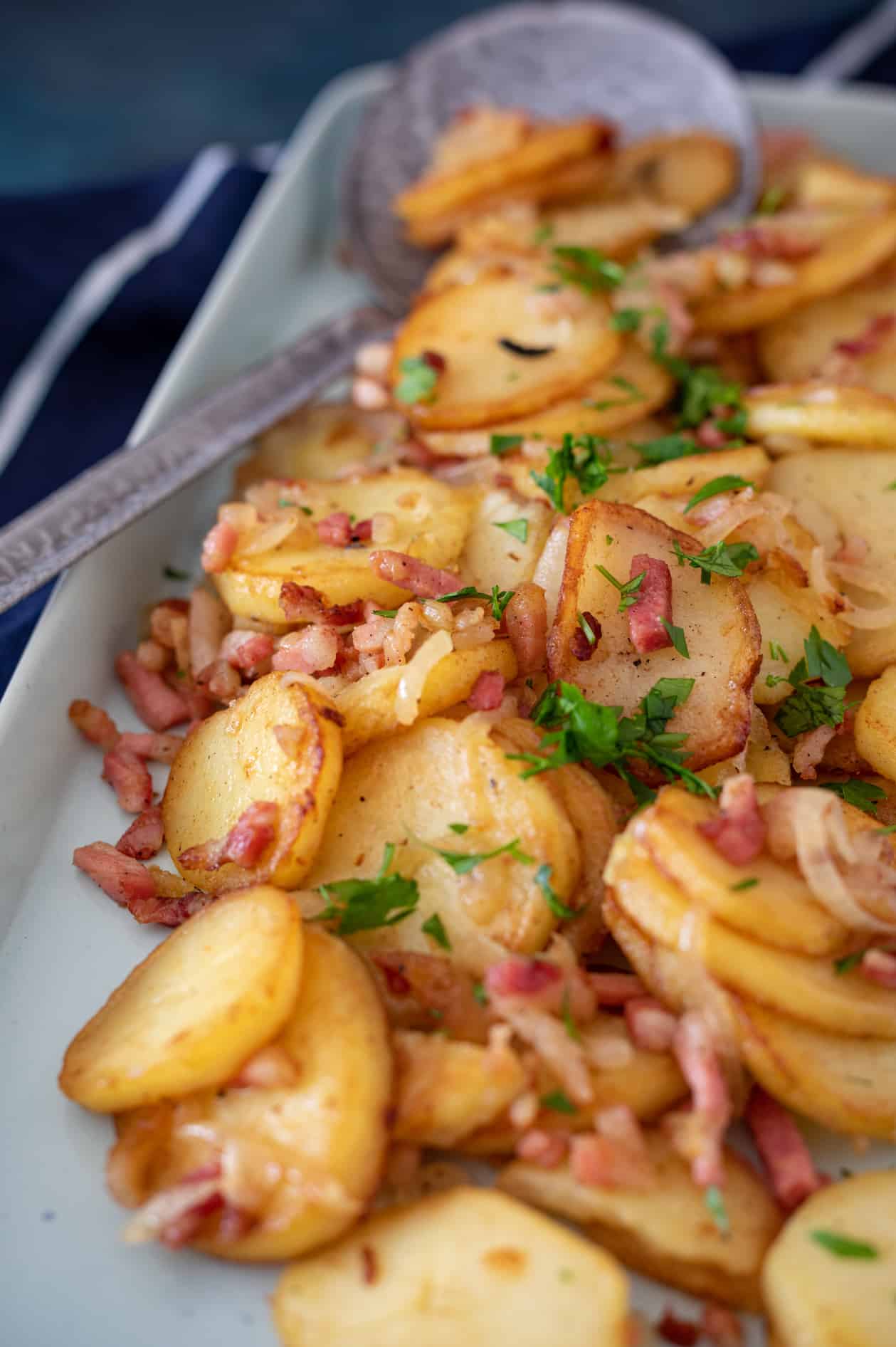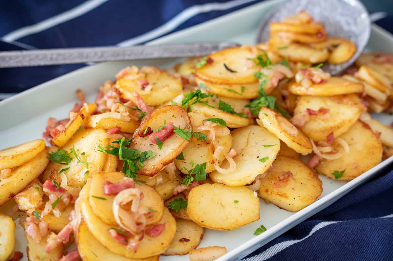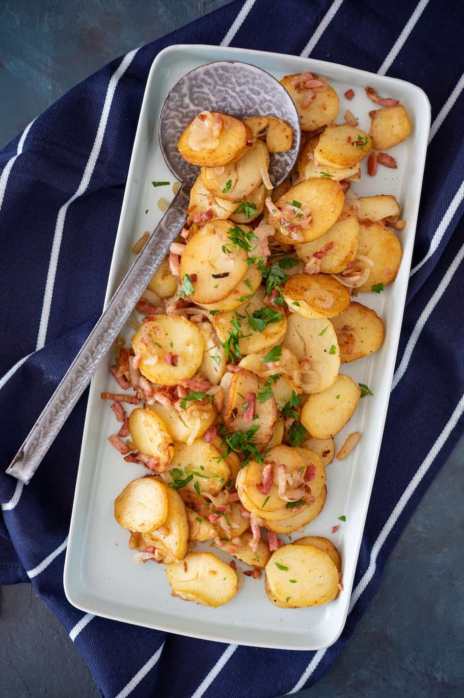 - Garneer de Duitse bratkartoffeln eventueel met wat fijngehakte peterselie.