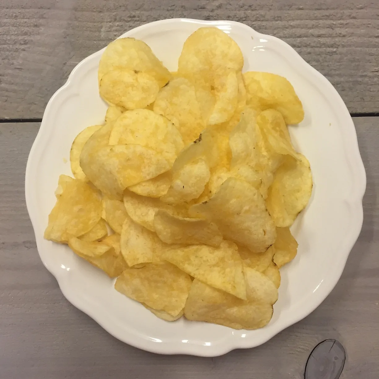 Alhoewel de hapjes heerlijk waren, was het ook iets te weinig (konden de mannen niets aan doen, ik heb nou eenmaal een grote maag) dus ‘s middags trek ik een zak cheese onion chips open. Dat is lang geleden en ik geniet met volle teugen van dit bordje.