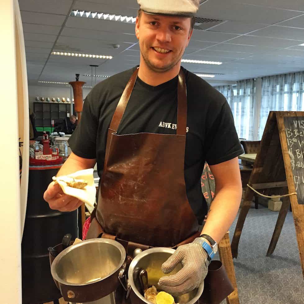Vandaag weer havermout als ontbijt, de ‘cinnamon brownie’ variant. Ik ben al sinds 4 uur ‘s ochtends op met een peuter die slapen niet zo nodig meer vond, maar filmpjes kijken met mama wel. Na 100 koffie ga ik met plezier naar kantoor, want vandaag komt De Scheveningse Oesterman en het nieuwe cateringbedrijf Kylinair langs om ons wat lekkere dingen te laten proeven.