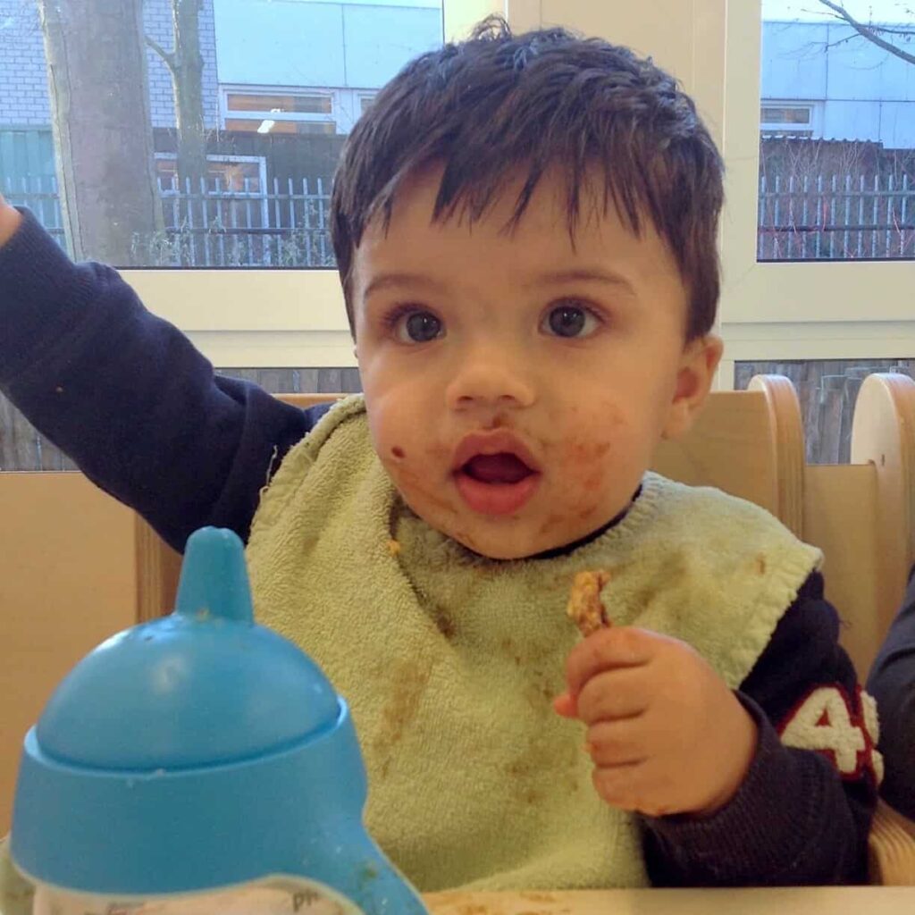 Mijn baby begint de week gelijk goed met een vreetkick op de opvang. Zo leuk om dat te volgen via de app waarin de juffen meerdere keren per week foto’s plaatsen.