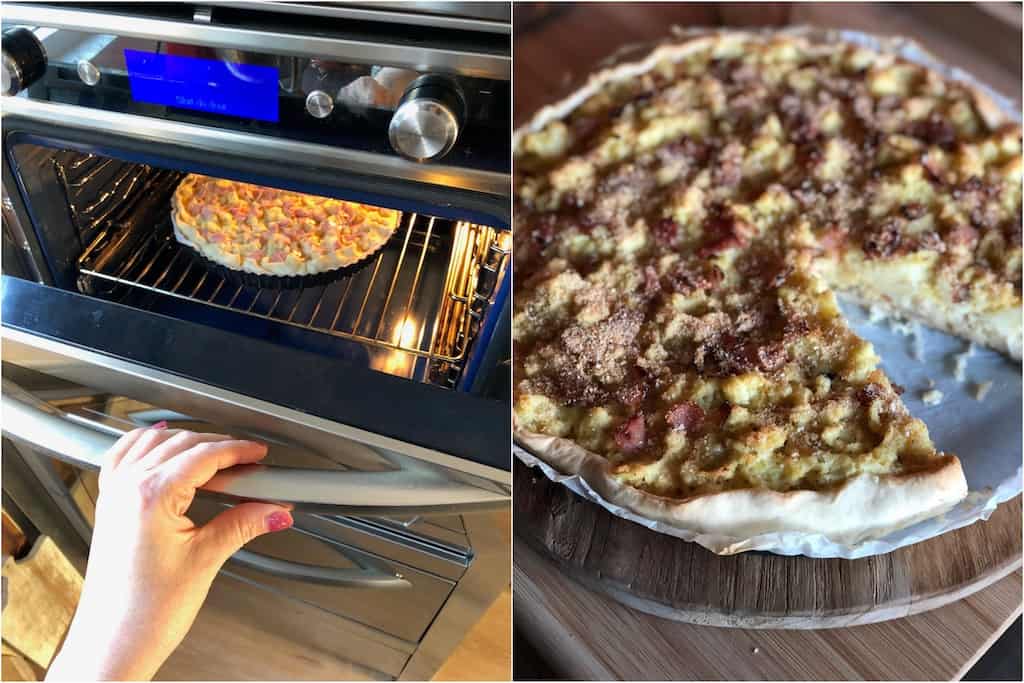 Ik begin de week met een baksel, een hartige. Alhoewel dat voor jullie niet geheel duidelijk was. Want toen ik deze foto’s deelde op Instagram dachten mensen aan een vlaai met rood fruit en witte chocolade en er werd zelfs geopperd dat dit een pizza met mac & cheese was. Maar nee hoor, dit is toch echt een zuurkoolquiche met mosterd en beenham. Hilarisch!