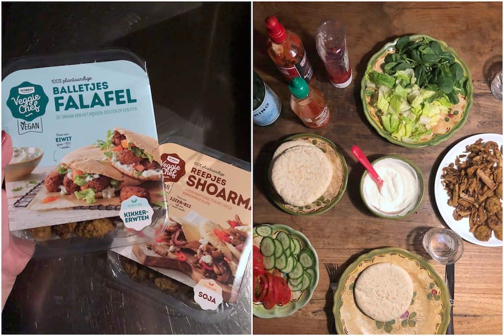 In de avond ga ik aan de slag met de nieuwe lijn vleesvervangers van Jumbo die me waren toegestuurd. We testen de shoarmareepjes en falafel en vooral de eerste is meer dan goedgekeurd! De falafel vonden we daarentegen een beetje droog.