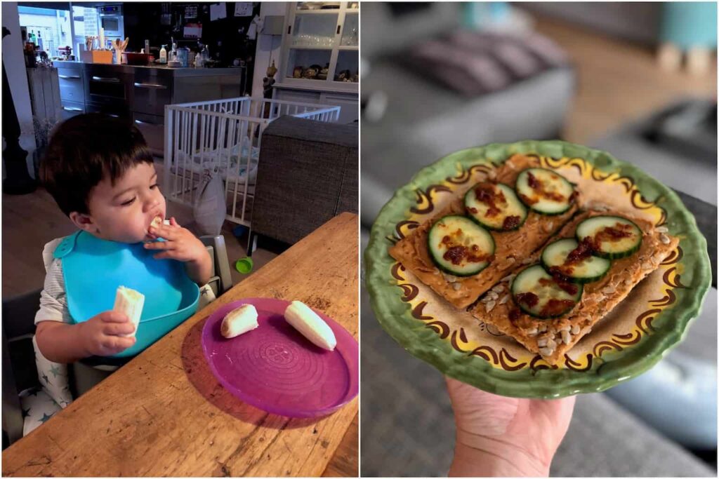 Op mamadag begint de ochtend altijd rustig. Zayne propt binnen 5 minuten een banaan naar binnen en daarna heeft hij nog 5 minuten nodig om de hele woonkamer te laten ontploffen. Heerlijk ochtendje zo! Vooral nadat ik crackers met pindakaas, komkommer en sambal badjak had gemaakt. Ik zit dus in een sambal badjak-fase en ik smeer het overal op. Wat is jullie favoriete combi ermee?