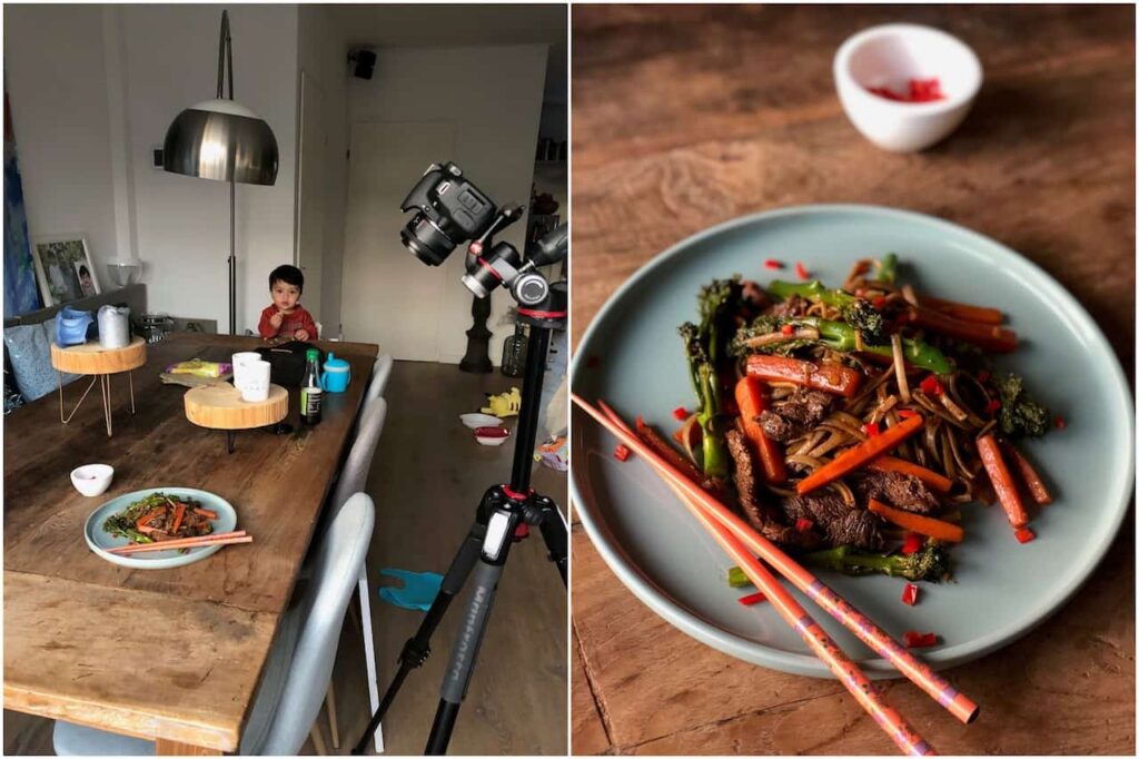 In de tussentijd maak ik ook vast het avondeten en dat was heel lekker. Ik zal binnenkort het recept van deze noedels met bief voor jullie online zetten. Gelijk even een kijkje achter de schermen: terwijl ik fotografeer geef ik Zayne iets te eten zodat ik precies 5 minuten heb om mijn foto’s te maken. Langer niet, want dan is meneer er klaar mee. Ik kan het kind geen ongelijk geven.