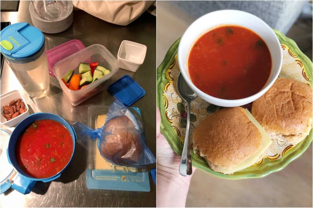 Vanochtend vroeg ben ik aan het food preppen voor de rest van de dag. Ik maak een snelle tomatensoep, smeer broodjes en maak eetpakketjes voor al mijn mannen. Dat was stiekem best veel werk in de vroege ochtend. Dat moet ik voortaan anders doen, door het bijvoorbeeld de avond ervoor vast te maken terwijl ik het avondeten maak. Weer wat geleerd.