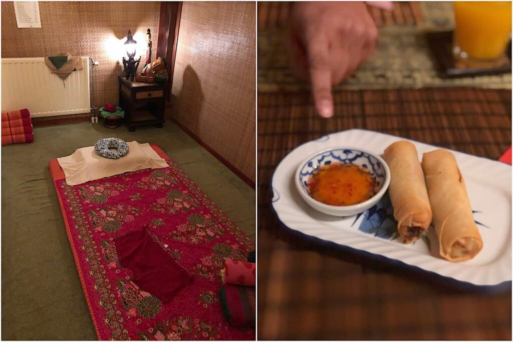 Terwijl ik hard aan het werk ben, komt mijn Mr. opeens eerder thuis en ‘ontvoert’ me naar de Thaise massagesalon. Wat een held! Ik lig 1,5 uur pijn te lijden (ik overdrijf nu een beetje, maar venijnig was ze wel), eet daarna kleine loempia’s en we bestellen daar ook nog eten om mee naar huis te nemen. Pad thai met garnalen en roergebakken groenten met kip. Vanavond even geen kickstart-recept, ik ben vermoeider dan ik wilde toegeven.