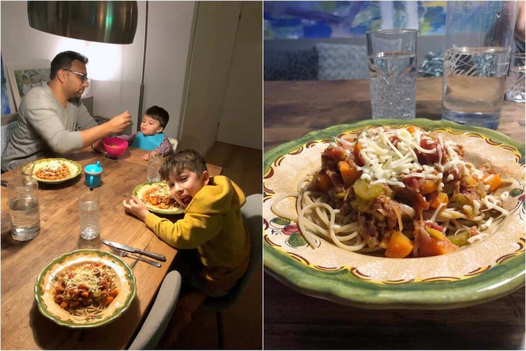 In de avond eten we volkoren spaghetti met heel veel groenten. Maar dan ook echt héél veel! Van mij persoonlijk had er iets minder ui en prei in gemogen, maar mijn mannen vinden het heerlijk! Zelfs baby Zayne eet zijn bord helemaal leeg. Van de pastasaus had ik een hele berg gemaakt en ik vries porties in voor drukke dagen. Een van mijn intenties van dit jaar, minder voedsel verspillen door meer in te vriezen. En het dan ook op te eten uiteraard!