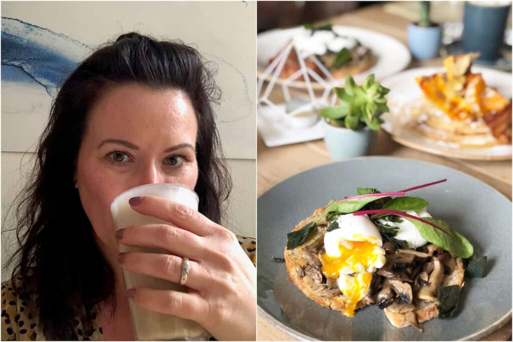 Ik ontbijt vanochtend met overgebleven ei-banaanpannenkoekjes van zondag. Ik piep ze even op in de oven en gooi er een flinke lepel bessencompote op. Ik heb iets met bessen de laatste tijd, mijn vriezer ligt er vol mee. Na een ochtend teksten typen vertrek ik naar Amsterdam voor een lunch met mijn foodvriendinnetjes bij Dignita in Amsterdam. Wat een toffe plek en alleen de kaart is al om te zoenen. Omdat ik nog vol in mijn AH Kickstart 10-daagse zit besluit ik een bewuste keuze te maken en ga voor de toast met romige paddenstoelen en een gepocheerd ei. Niet alleen een bewuste keuze, maar ook nog eens zalig. En omdat ik zo trots was op mijn keuze, heb ik daarna ook nog een paar happen uit de pancake stapel erachter genomen (waanzinnig). Een foodblogger moet toch proeven, nietwaar?