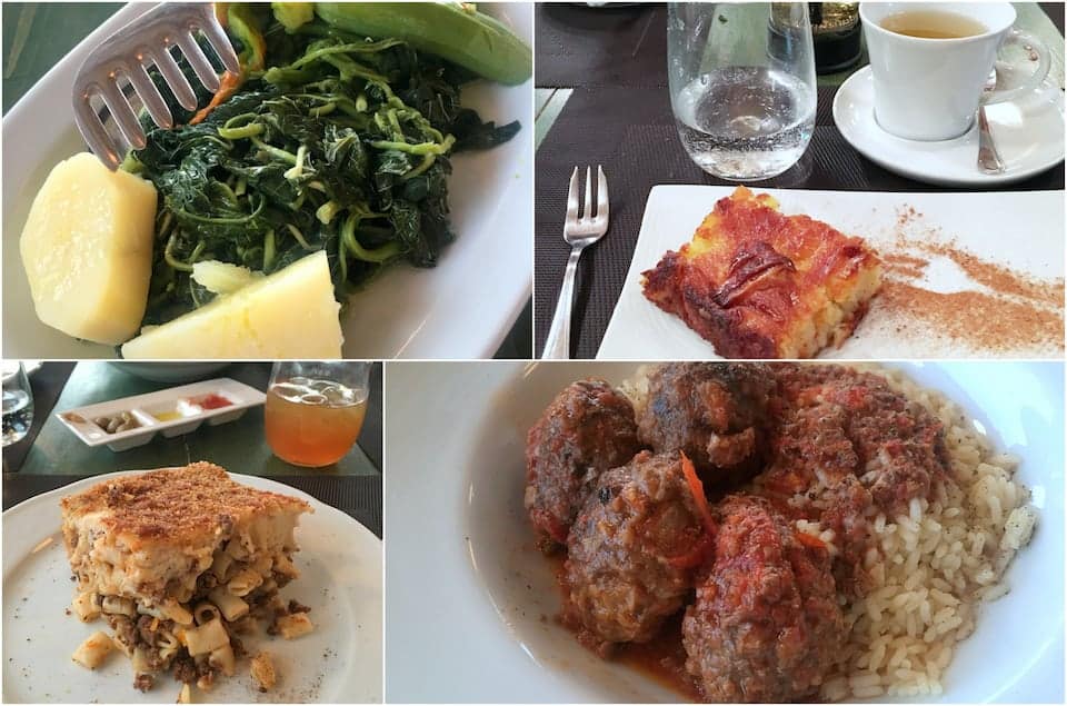‘s Avonds kun je hier ook eten. Iedere ochtend wordt er op het bord geschreven wat het gerecht van de dag is en dan kun je aangeven of je mee wilt eten. Stefania koopt dan in op basis van het aantal gasten en haalt de groenten uit haar eigen tuin. Zo aten we er zalige gehaktballetjes met tomaat en rijst (soutzoukakia) en bij de pastitsio (een soort lasagne) at ik mijn vingers op. Op onze laatste ochtend werd er zelfs een half varken in de houtskooloven gezet.