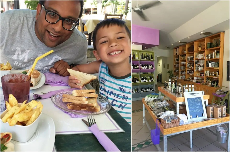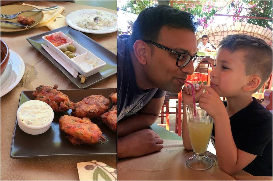 Halverwege onze vakantie zijn we ‘verplaatst’ naar een andere accommodatie, omdat we verre van blij waren. Dat had Eliza was Here snel en goed geregeld, ware het niet dat ook hier niet de beloofde rust was vanwege de aanleg van een compleet nieuwe weg. Op een verlaten berg, naast het zwembad en onze kamer, middenin de zomer. Ik kan hier heel veel grapjes over gaan maken, maar goed. Deze accommodatie, Katalagari Suites, was verder wel echt heel fijn. Prachtige locatie, over een paar weken nog beter bereikbaar door de nieuwe weg (grapje), zeer ruime appartementen die perfect schoongehouden worden, aardige mensen en hele goede service. En niet geheel onbelangrijk: er wordt fantastisch gekookt door Stefania.