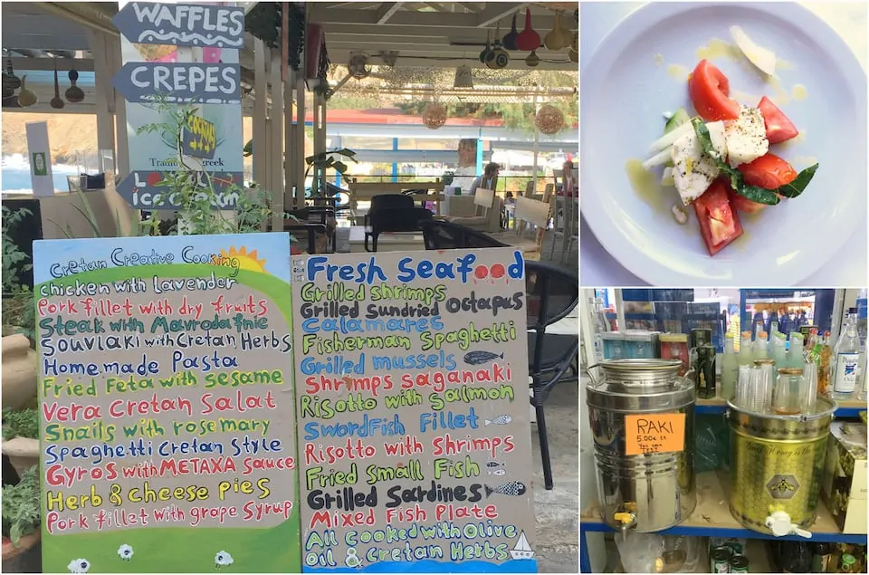 De traditionele restaurants op Kreta hebben veelal dezelfde kaart. Bij Kritamon ga je dat zeker niet vinden, want de chef laat zich ieder seizoen inspireren door de verse producten van het eiland en maakt daar eigentijdse gerechten van. De olijfjes die op tafel stonden waren de lekkerste die ik ooit heb gegeten en dat gold ook voor de Griekse gazpacho. Prijsniveau ligt ietsje hoger, maar is nog steeds heel goed betaalbaar. Hier leerden we ook dat de Grieken pas na 21.30 uur gaan eten. Want het restaurant leek verlaten totdat de klok 22.00 uur aangaf…