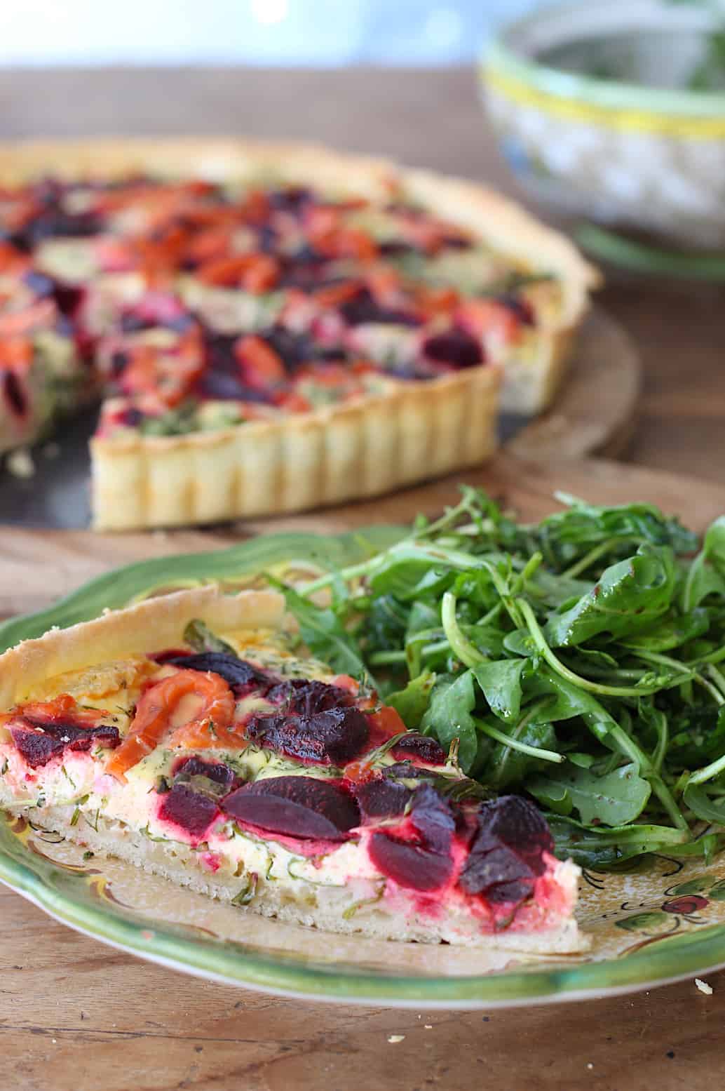 Deze zalmquiche met biet en rucola kookte ik vorig jaar voor de Eetkalender 2018. Een heerlijke maaltijd waarvoor je maar 15 minuten in de keuken hoeft te staan en de oven doet de rest van het werk. Je kunt ‘m ook makkelijk voorbereiden of al een dag eerder maken. En de restjes van deze zalmquiche smaken de volgende dag heerlijk als lunch.