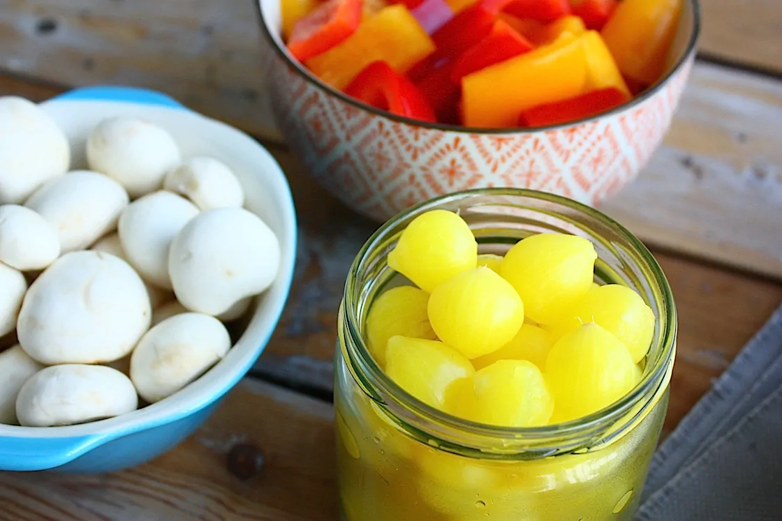 – met alcohol: 300ml droge witte wijn, vers citroensap, 1el maizena en 1el kirsch