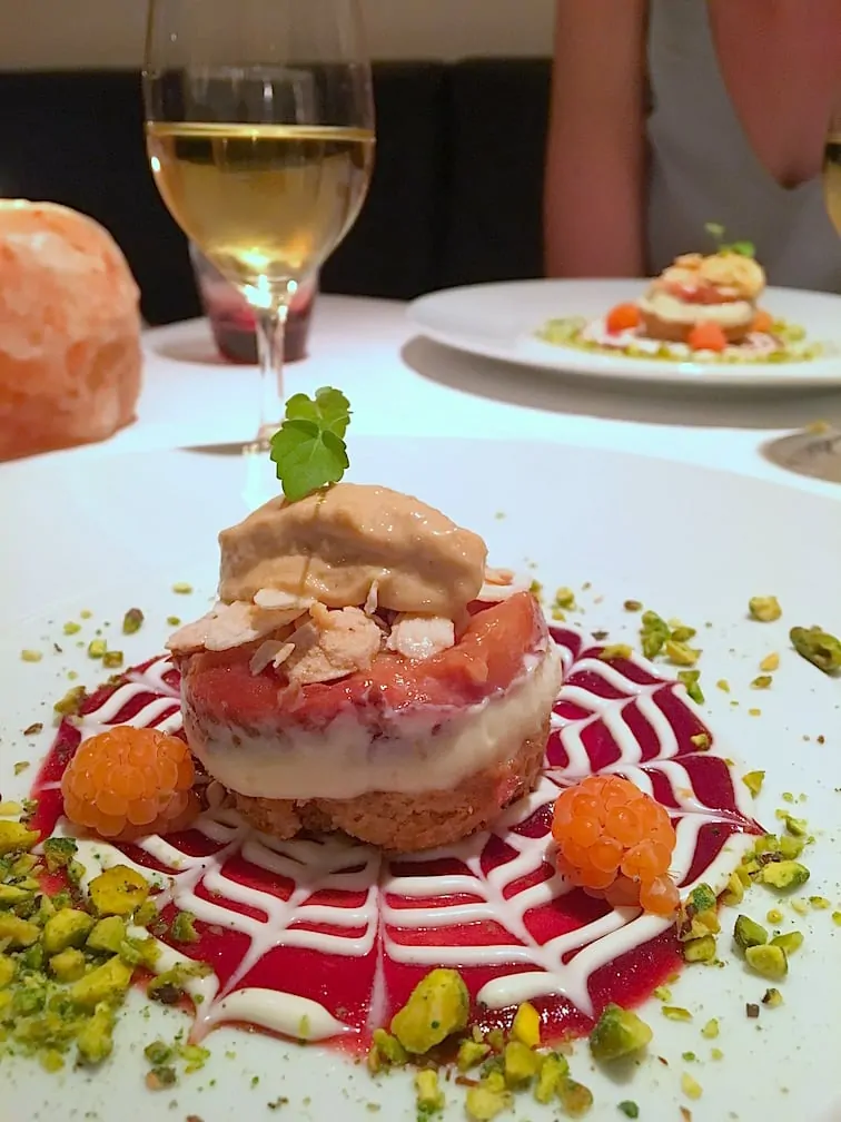 Zowel de konijn als eend waren perfect gegaard en goed op smaak. Ons dessert bestond uit chocolade en sorbetijs van kumquats. Qua presentatie wellicht wat over de top, maar de smaak was goed.