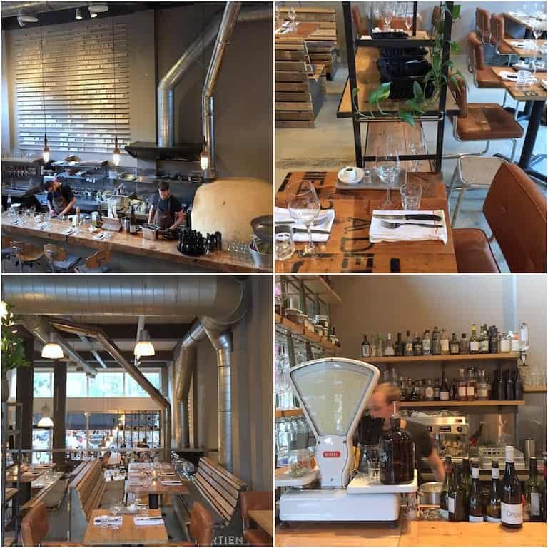 De Schiedamse Veste is een fijne straat en voor de deur van Dertien kun je ook heerlijk buiten eten. Hadden wij even mazzel met het mooie weer, deze vrijdagavond konden we de hele avond buiten zitten. Alhoewel binnen zitten hier ook echt geen straf is, want het restaurant is prachtig ingericht. Industrieel met veelal houten elementen. Je voelt je er gelijk op je gemak.