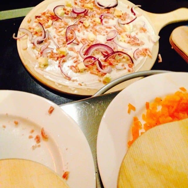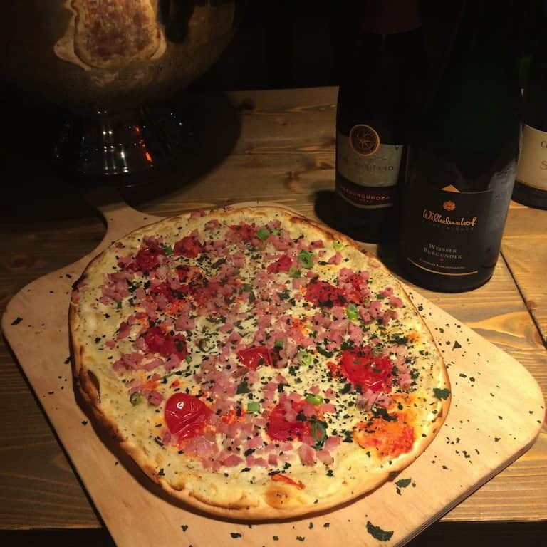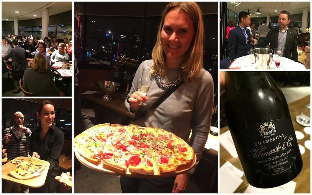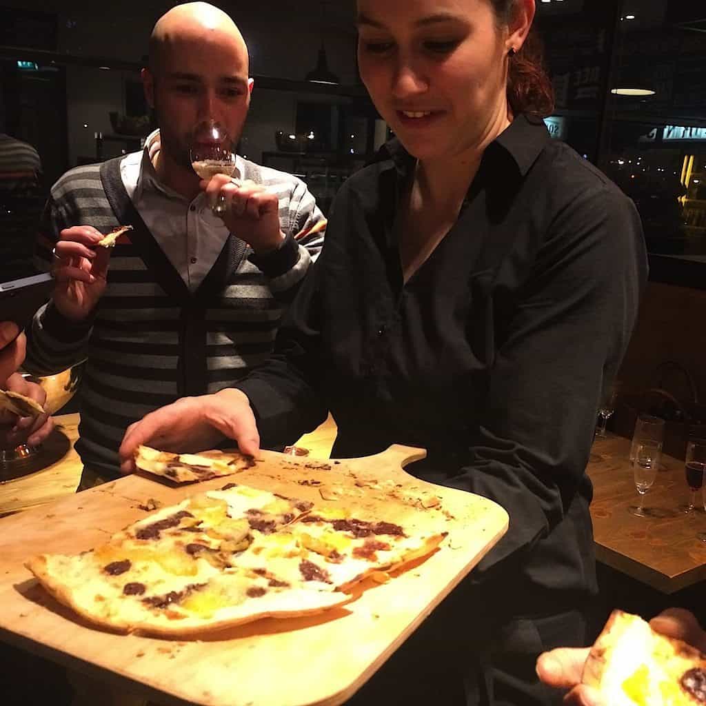 Op donderdag 6 februari werd door Kim en Nina de eerste Flammkuchen en Bubbels tweetup georganiseerd in Deli, onderaan de Euromast. Een ongedwongen offline event om online mensen bij elkaar te brengen voor een flammkuchen proeverij met bijbehorende bubbels. En dat waren niet de minste bubbels, per flammkuchen werden 2 verschillende geschonken zodat je daarmee voor jezelf de beste wijn-spijscombinatie kon bepalen. Natuurlijk heb ik voor jullie het hele menu onthouden (lees: uitdraaitje in mijn tas gestopt) en dat tref je onderaan deze blog aan. Laat je inspireren door de heerlijke combinaties voor de flammkuchen, want het is namelijk reuze makkelijk om ze zelf thuis ook te maken. Scroll vooral even naar beneden voor het recept.