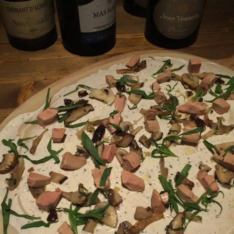 Paddenstoelen, sjalot, dragon, gerookte ganzenlever en truffel