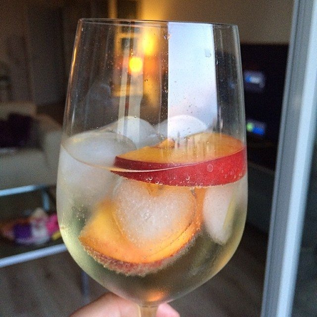 Vul een hoog glas voor 2/3 met ijsblokjes. Schenk hier de vlierbloesemsiroop met ginger ale op en roer. Garneer met partjes perzik en serveer.