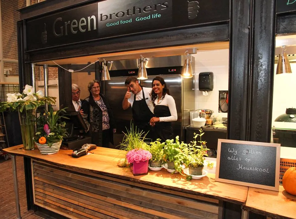 Het concept van Green Brothers bestaat in de basis uit vegetarische hapjes. broodjes. soepen, salades, frittata’s en groentetaarten. Bij een aantal gerechten wordt gebruik gemaakt van een revolutionaire vleesvervanger van Nederlandse bodem. Ook voor kinderen hebben ze speciale gerechten op de kaart.