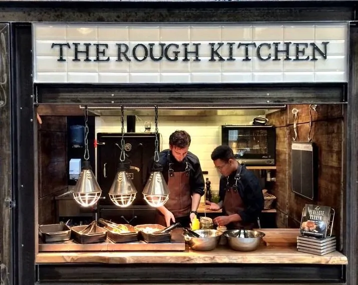 The Rough Kitchen is een concept van twee carnivoren in hart & ziel. Ze grillen, smoken en braden. Met een voorliefde voor (ras)varkentjes van goede komaf. Het liefst van kop tot staart. Zoals de prijswinnende slow-cooked pulled porc sandwich. Maar ook sticky spareribs en andere mooie delen van het varken worden in de Foodhallen gepresenteerd.
