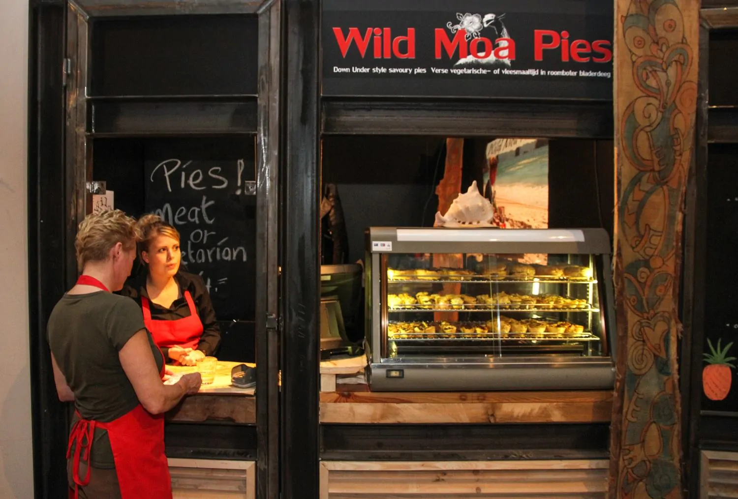 Wild Moa Pies is de enige ‘pie’ winkel in Amsterdam waar je de echte originele Nieuw-Zeelandse/Australische pie kan kopen. De pies zijn gemaakt met vlees of juist vegetarisch. Een favoriet onder de Wild Moa Pies klanten is de typisch Australische Down Under Pie.