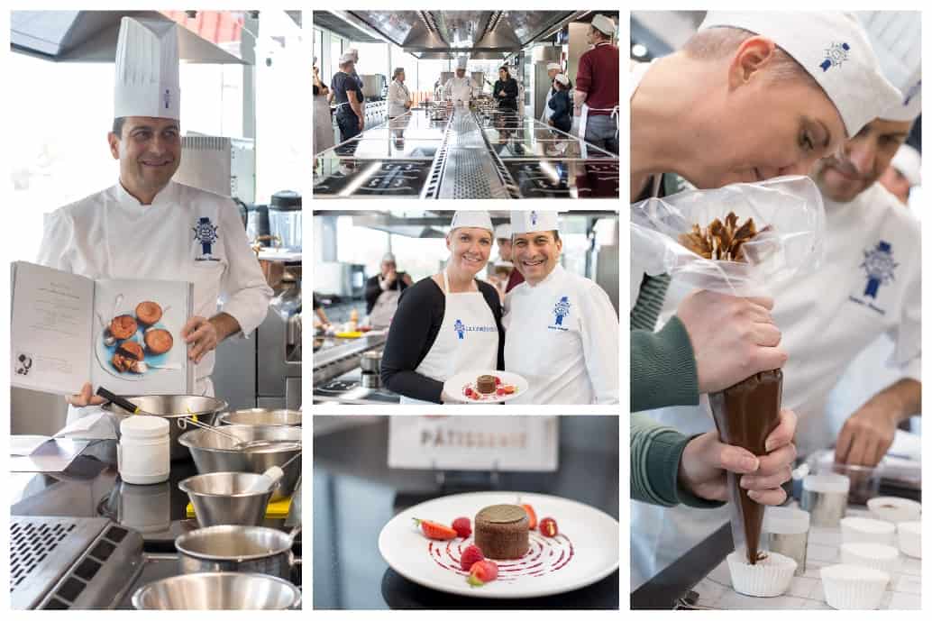 Je leert hier van de meesters en het was dan ook een eer om met chef Fabrice Danniel aan de slag te mogen in een van de vele keukens die de school rijk is. We maakten een geweldig dessert; de Mi-cuit au chocolat. Dit chocoladetaartje doet je watertanden, aangezien de chocolade en crème anglais er uitloopt bij het aansnijden.
