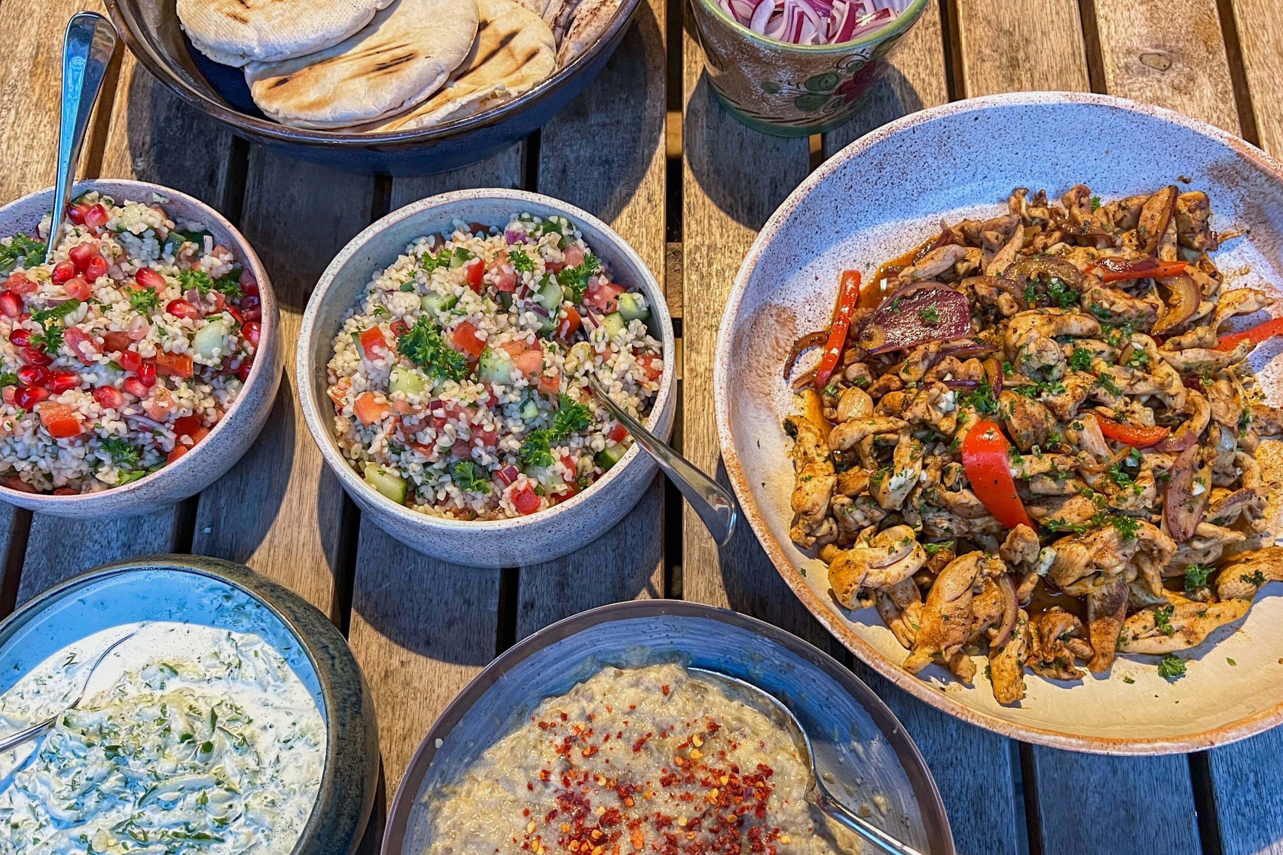 - Je hoeft natuurlijk niet alles te maken, maar het is wel lekker. Als je alleen de BBQ kip shawarma met de komkommersaus maakt, ben je al heel gelukkig. Maar met alles op je bordje wordt het wel een memorabele zondagmiddag.