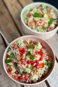 - Serveer de tabouleh zo of garneer met granaatappelpitjes.