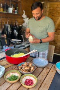 - Bereiding plov: 30 minuten (kan voorbereid worden of je maakt ‘m als de kip op de barbecue ligt)