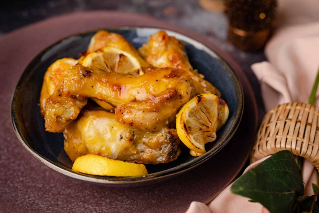 - Leg de kip op een schaal of in een grote kom, en sprenkel er de sap van een halve citroen overheen. Lekker fris.