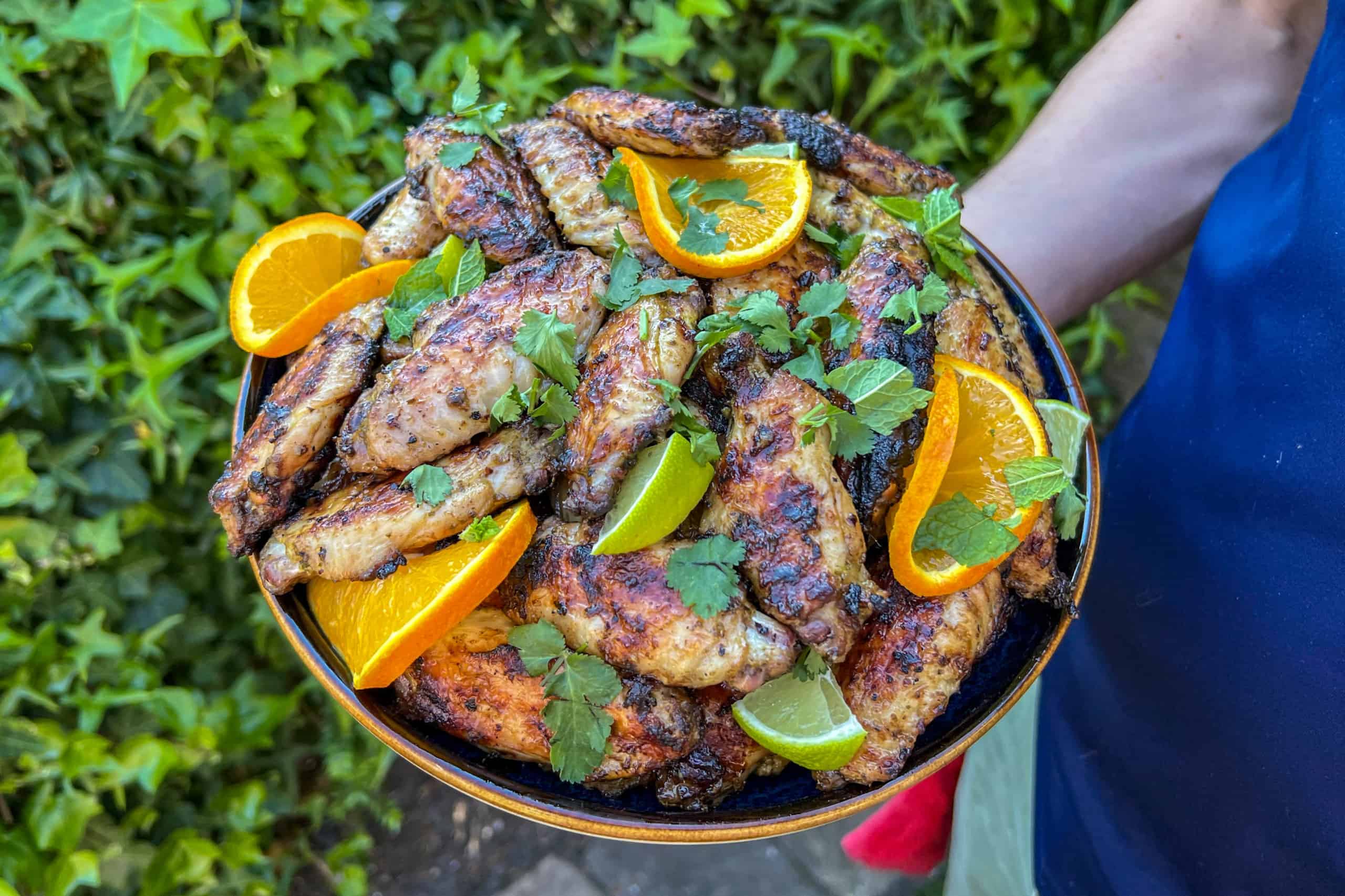 - Leg de Miami Mojo Wings op een schaal en garneer met wat fijngesneden koriander, munt en besprenkel met wat uitgeknepen limoen- en sinaasappelsap (knijp dat even nonchalant uit boven de schaal na het opdienen voor die extra professionele look).