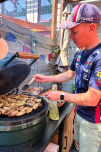 Graag stel ik jullie voor aan de helden van dit verhaal, met van links naar rechts: Shaiff, Tim, Diederik, Tinus en Sander. Iedere race is iemand anders verantwoordelijk voor een kiprecept geïnspireerd op het land waar de race wordt gehouden. Ik typ het voor ze uit en zorg dat jullie het recept krijgen, meestal ruim op tijd voor de race ;-).