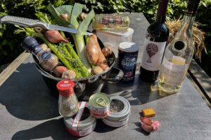- ½ fles rode wijn, bijvoorbeeld een Franse Bourgogne + extra voor reserve of als je dorst hebt