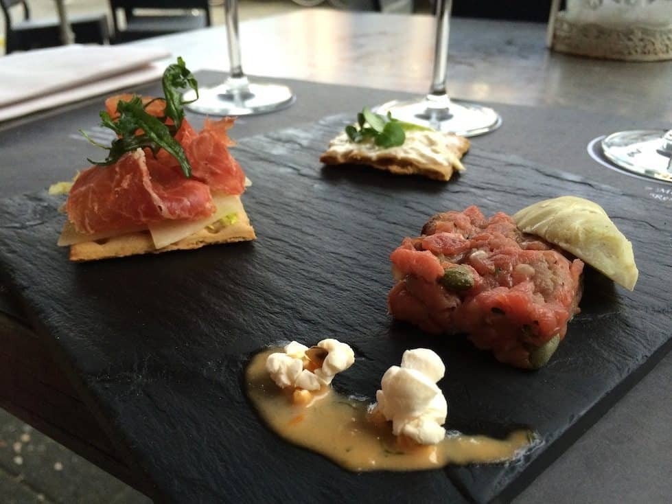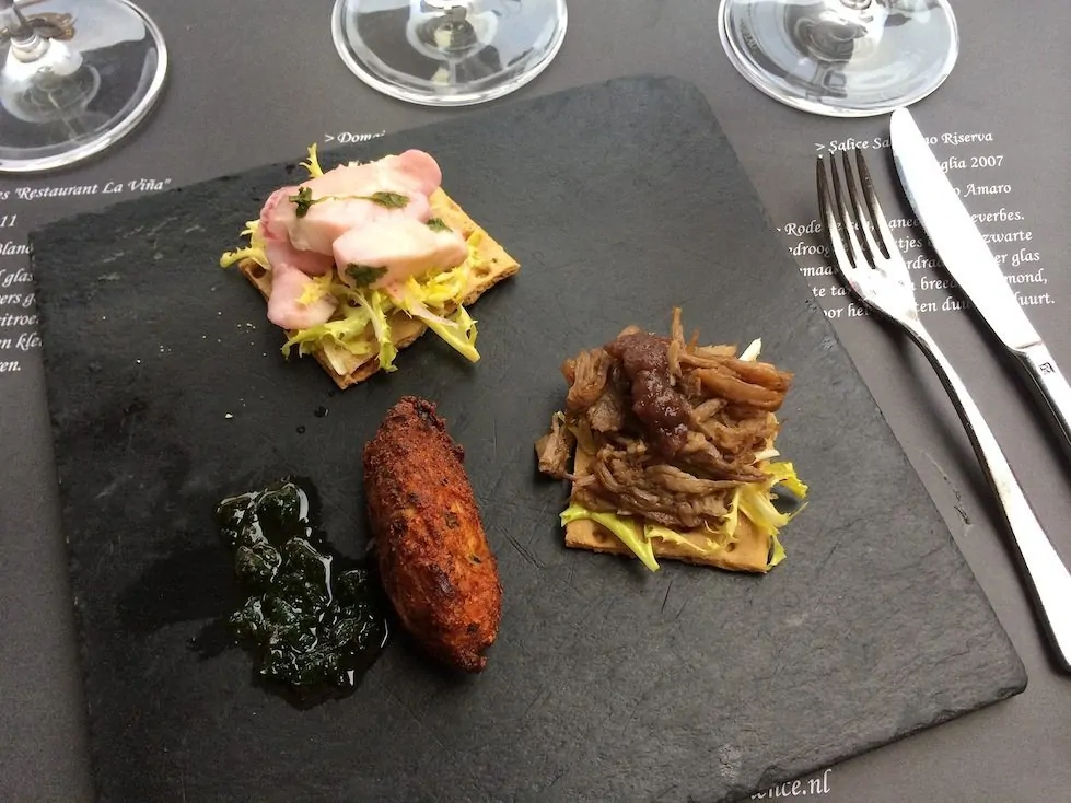 De menukaart is compact en uitgebalanceerd. Met een aantal echte Spaanse klassiekers waarbij er altijd een creatieve twist van de chef valt te bespeuren. Denk bijvoorbeeld aan Iberico croquetas met tuinbonen, gefrituurde kappertjes en foie gras. De prijzen van de voorgerechten variëren van € 8,25 tot € 10,50. Een hoofdgerecht eet je van € 18,- tot € 23,- en een dessert van € 3,25 tot € 8,50. Je kunt ook een 4-gangen menu voor € 42,50 bestellen. Vergeet dan niet om aan Jacqueline te vragen of zij er een bijpassend wijnarrangement bij wil maken. Wil je trouwens volledig glutenvrij of vegetarisch eten? Geef dit dan bij ze aan, vrijwel alles is mogelijk.