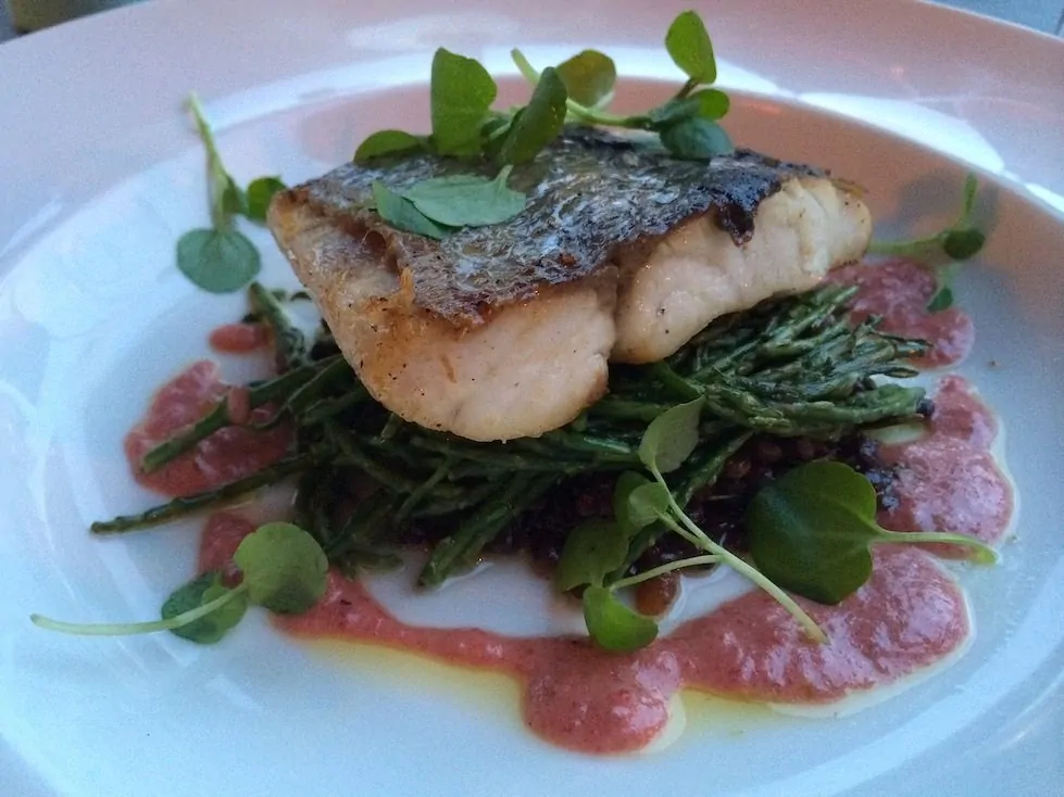Na de taste mat proeven wij ook nog wat andere gerechten van de kaart. Zoals de gebakken corvina filet met zwarte linzen, zeekraal en rode bieten crème.