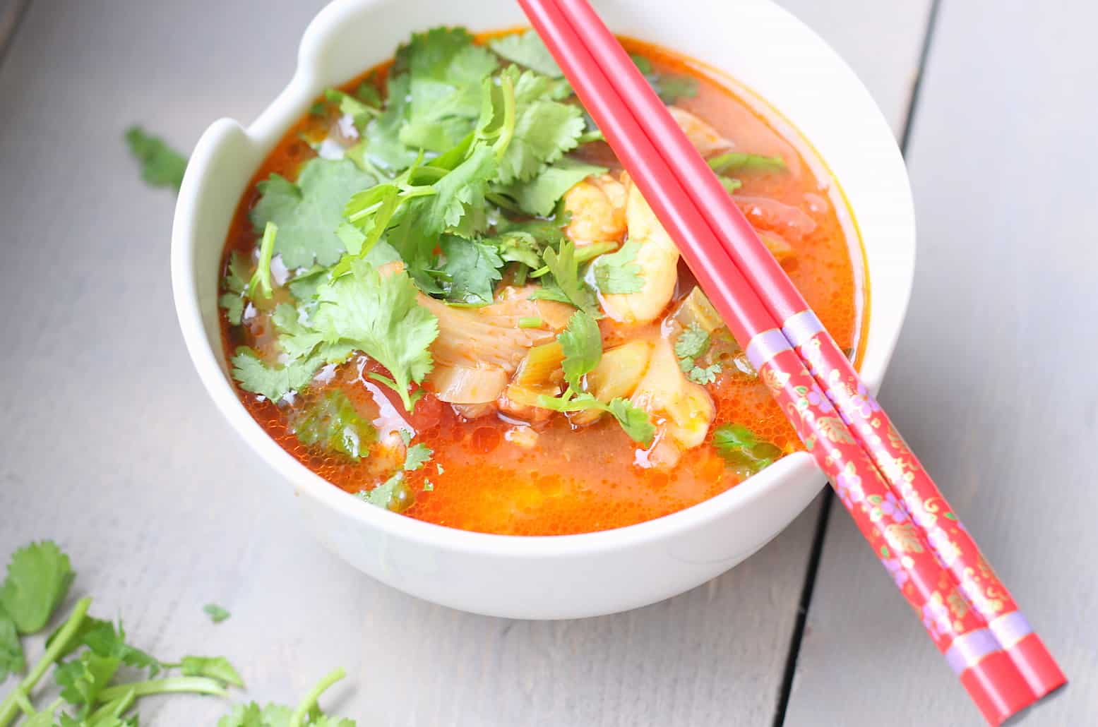 Het handige aan soep vind ik altijd dat je er met gemak veel groenten in kunt verwerken. Deze vissoep met Chinese szechuan peper bevat naast groenten ook nog eens heerlijke kruiden en vis.