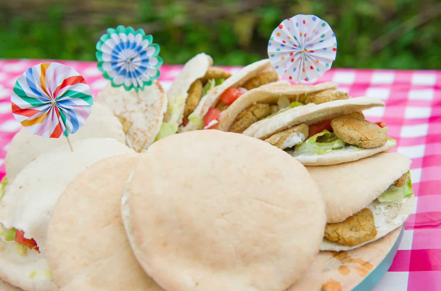 We starten de week makkelijk en vegetarisch met deze broodjes falafel met zelfgemaakte knoflooksaus. Snijd er voldoende rauwkost bij en je hebt een complete maaltijd op tafel staan.