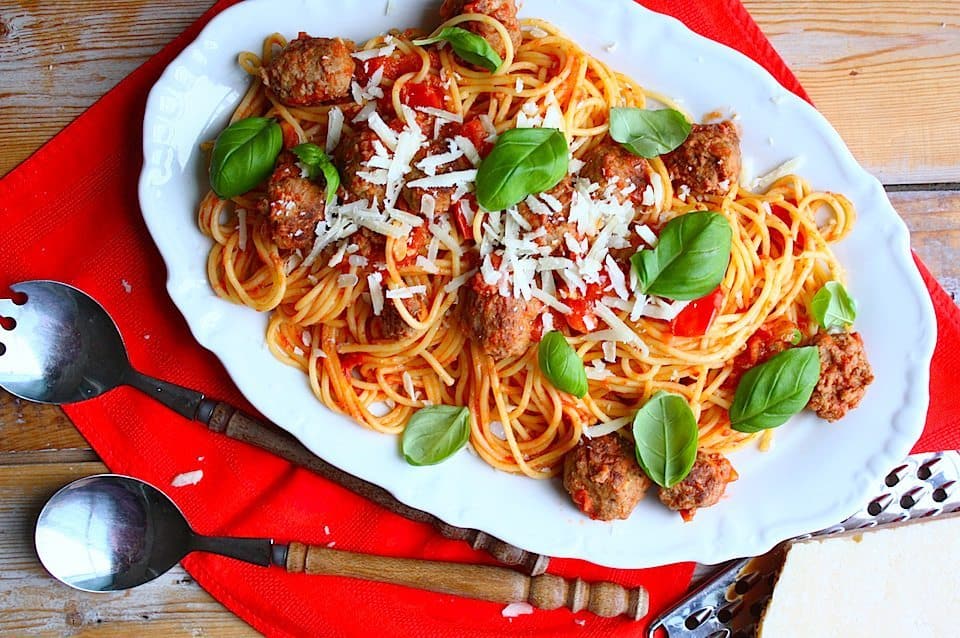 Spaghetti met balletjes, welk kind wordt daar nou niet blij van. Ik vind het een top gerecht om de vakantie mee in te luiden. Yes, die is vandaag begonnen, want morgen heeft mijn kleine man een studiedag.