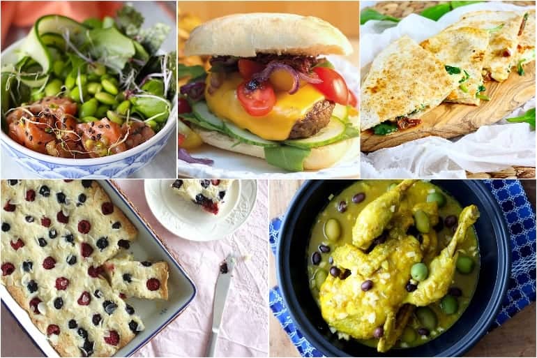 Het weekmenu staat dit keer vol met allerlei zomerse gerechten. En daarmee bedoel ik dat ze ofwel een zomerse uitstraling hebben of er seizoensproducten in gebruikt worden. Ze zijn geschikt om te maken als je vakantie hebt, maar ook als je gewoon aan het werk gaat. We maken het namelijk nog steeds niet te ingewikkeld en het kost weinig tijd om de gerechten op tafel te zetten. Des te meer kunnen we met z’n allen genieten van de zomer!