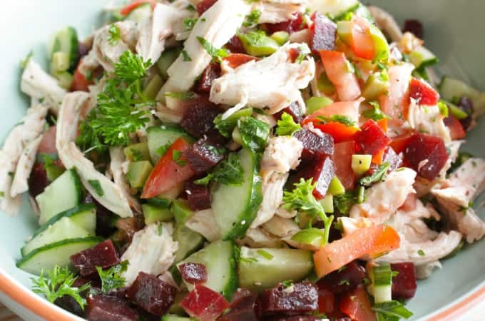 Deze Griekse kipsalade is een hele frisse en smaakvolle salade en dat maakt ‘m heerlijk voor de zomer!