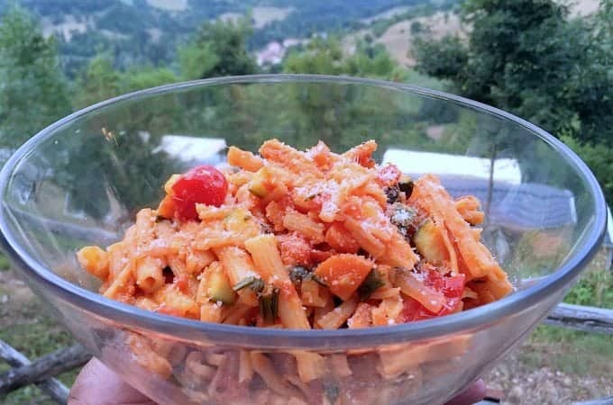 Deze vegetarische pasta met kruiden kun je zelfs op de camping prima bereiden!