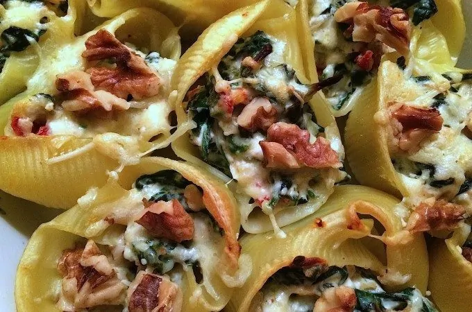 We beginnen de week in Italië, het land van pasta! Deze gevulde pastaschelpen met spinazie doen?