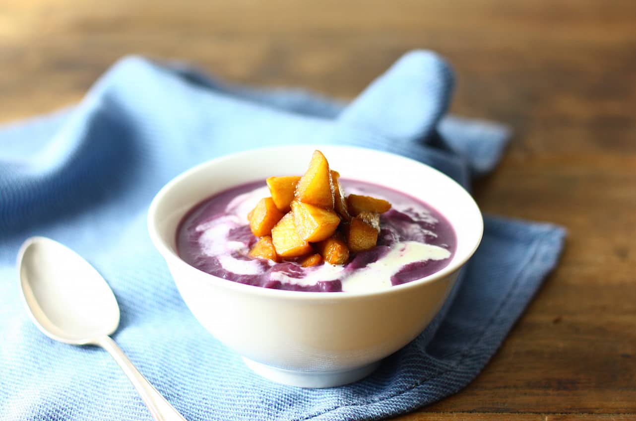 Rode kool in een soep met gekarameliseerde appeltjes was voor mij een grote verrassing! Lekker in combinatie met tosti’s, bijvoorbeeld met geitenkaas.