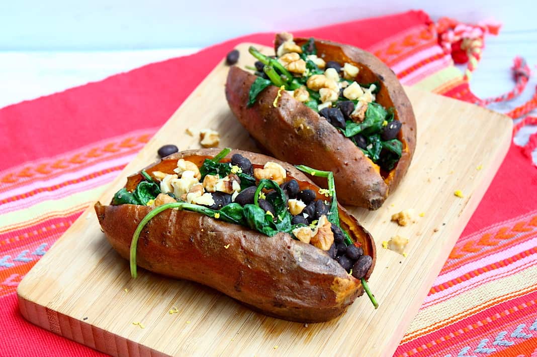 Het is belangrijk om dagelijks voldoende vezels binnen te krijgen. Die vind je onder andere in groenten en peulvruchten. Deze gepofte zoete aardappel met spinazie en zwarte bonen is daar een perfect gerecht voor. Wil je meer weten over vezels en andere tips lezen om je vezelinname te verhogen, lees dan ook dit artikel wat we samen met de Maag Lever Darm Stichting hebben geschreven.