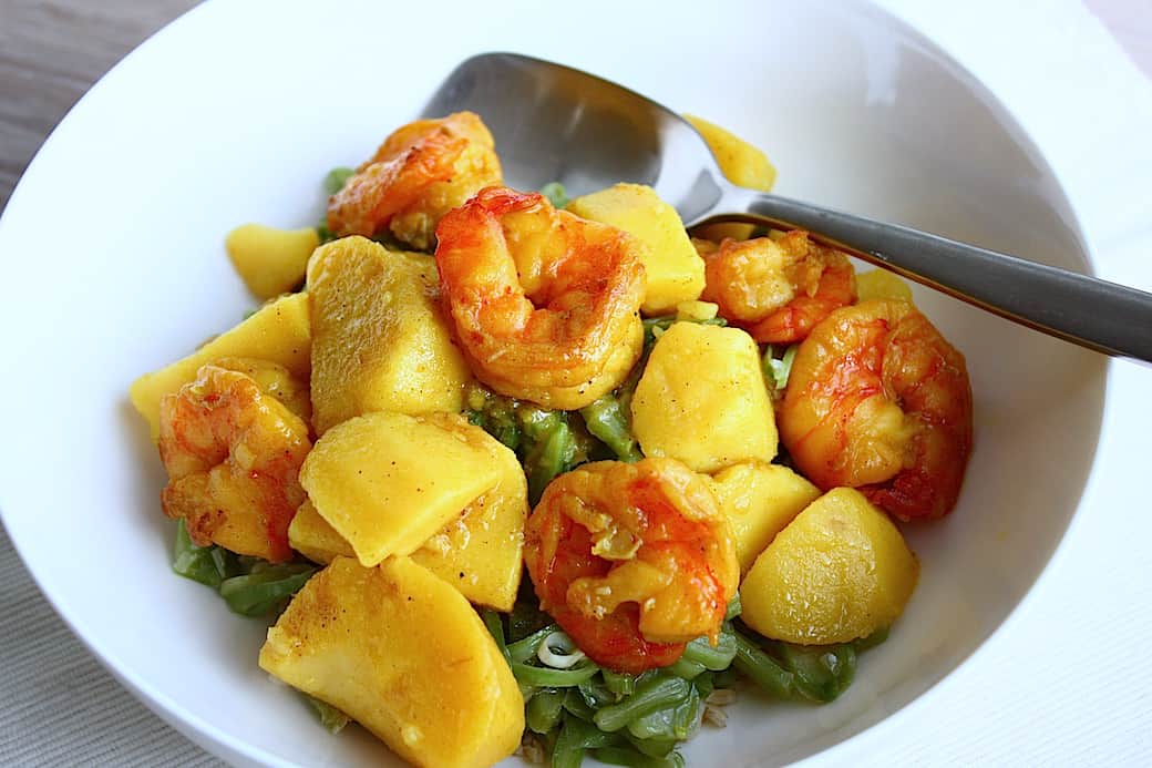 Deze garnalen in masala met aardappel is een van de favoriete gerechten van mijn Mr. Hij heeft ‘m al lang niet gekregen van mij dus ik zet de garnalen maar weer eens op het menu.
