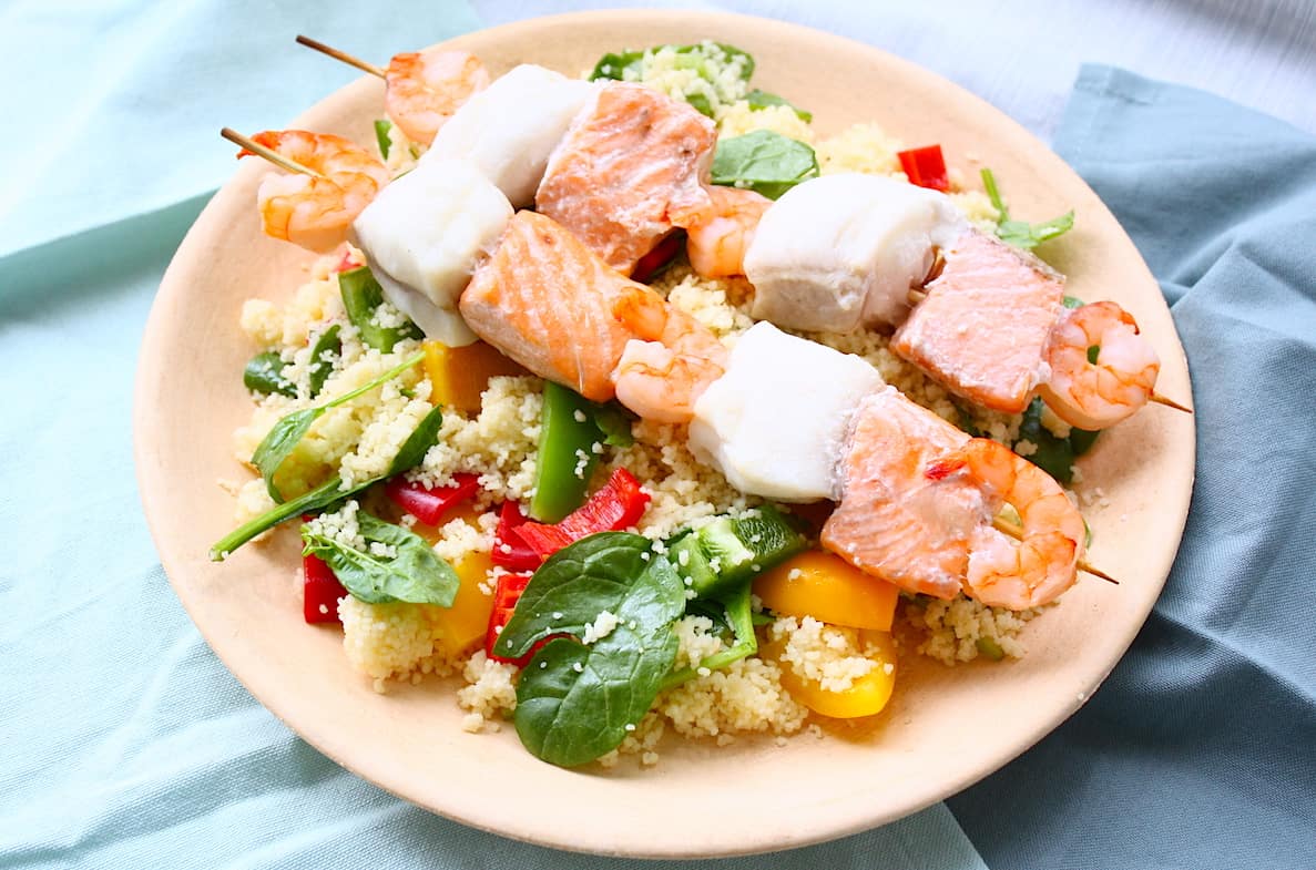Weer eens wat anders met vis, maak er kebabs van die je serveert met couscoussalade. Persoonlijk zou ik er nu nog wat extra groenten aan toevoegen. Leuk om te zien hoe mijn eigen visie en smaak op dit gebied is ontwikkeld sinds de Eetkalender van 2017. In huize Kookt komt nu echt veel meer groente op tafel!