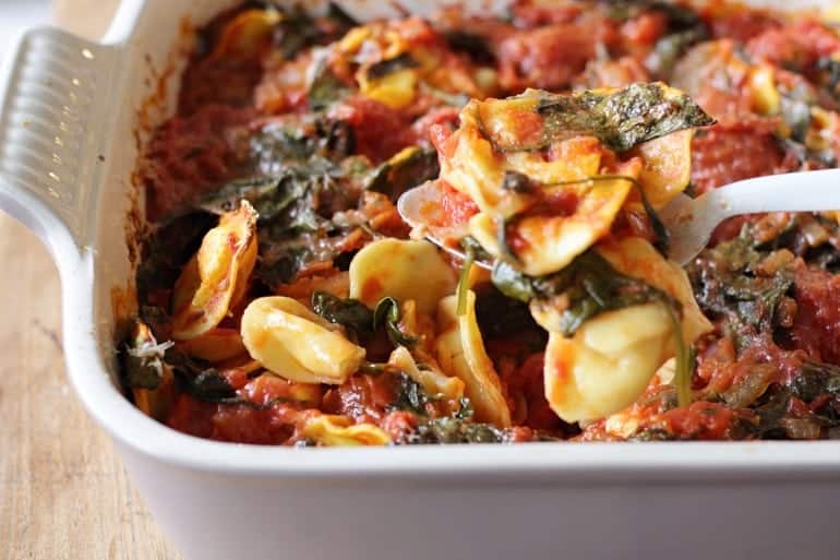 Pasta vandaag en wat voor een! Deze gegratineerde ravioli met spinazie is misschien wel een van mijn favoriete vegetarische pastagerechten van de blog.