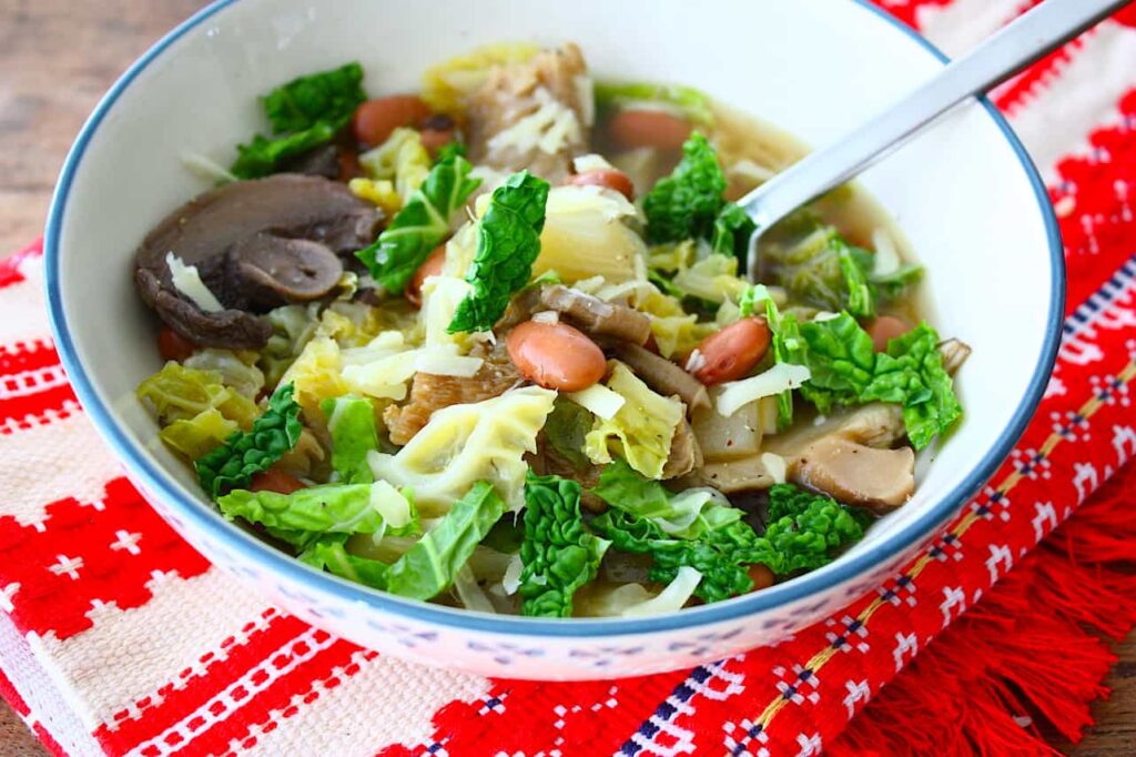 Aangezien het nog zo fris is buiten kan een verwarmende soep niet ontbreken. Deze minestrone is rijk gevuld met groenten en bonen. Dit recept bevat ook mijn vegetarische visie die ik in 2012 heb gepubliceerd, leuk om te zien dat daar niet veel aan veranderd is! Op deze pagina vind je trouwens nog meer inspiratie voor verwarmende soepen.