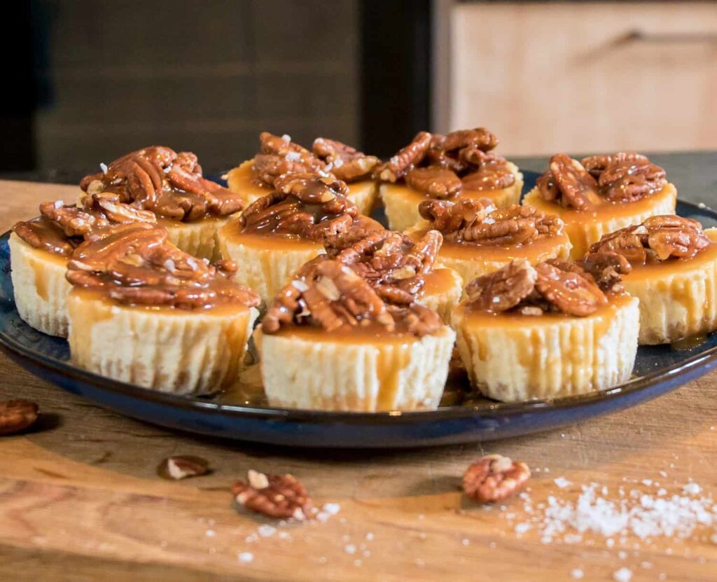 En dan de klapperrr van de week! Waanzinnig lekkere mini Philadelphia cheesecakes met gezouten karamel en pecannoten die ik samen met Rutger van den Broek heb gebakken. Ook perfect voor Pasen, maar ik adviseer je om ze dit weekend vast te bakken. Als test, een mens moet toch proeven, nietwaar 😉
