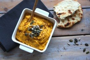Naan met homemade dips als guacamole, baba ganoush, muhamarra en pompoen hummus